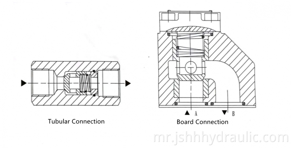 एस 20 पी मालिका हायड्रॉलिक चेक वाल्व आपल्या हायड्रॉलिक सिस्टमचा दबाव राखण्यासाठी आहे आणि यामुळे उलट प्रवाह रोखू शकतो. तेल पोर्टपासून बी पोर्टवर मुक्तपणे वाहू शकते.